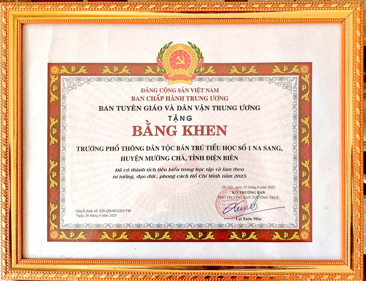 Không chỉ dừng lại ở thành tích cá nhân, Trường PTDTBT Tiểu học Số 1 Na Sang cũng được Ban Tuyên giáo và Dân vận Trung ương tặng Bằng khen theo Quyết định số 628-QĐ/BTGDVTW, ngày 26 tháng 6 năm 2025, vì đã có thành tích tiêu biểu trong học tập và làm theo tư tưởng, đạo đức, phong cách Hồ Chí Minh, đồng thời cô giáo Phạm Thị Thu Hằng sẽ là đại diện của Trường PTDTBT Tiểu học Số 1 Na Sang tham dự Hội nghị biểu dương điển hình tiên tiến toàn quốc trong học tập và làm theo tư tưởng, đạo đức, phong cách Hồ Chí Minh năm 2025, diễn ra vào ngày 16–17 tháng 11 tới đây tại Hưng Yên – một niềm vinh dự lớn lao, minh chứng cho uy tín và vị thế của nhà trường trong phong trào thi đua học tập và làm theo Bác.