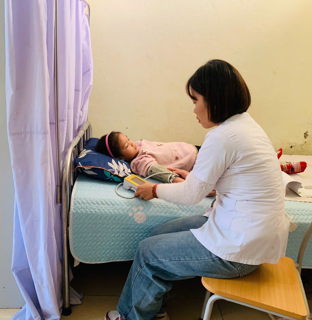 Hình ảnh: Nhân viên y tế cân đo, chiều cao , đo H.A học sinh trong trường