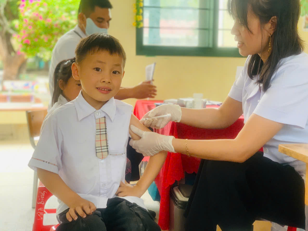 Hình ảnh: Nhân viên trạm y tế xã tiêm TD( uốn ván bạch hầu) cho học sinh khối 2